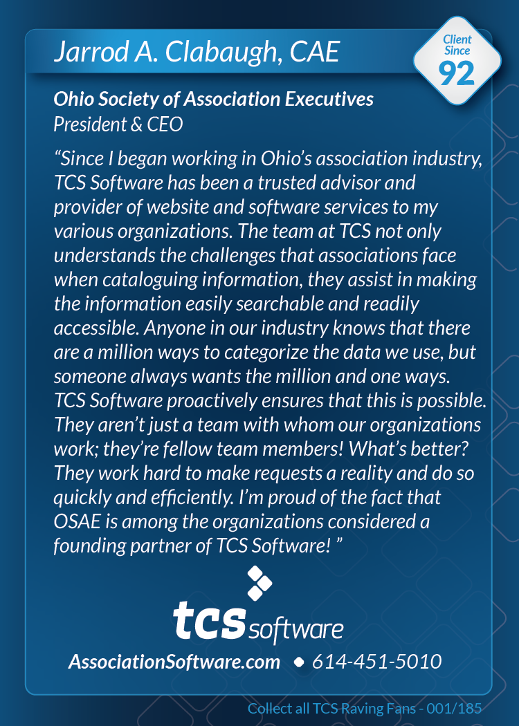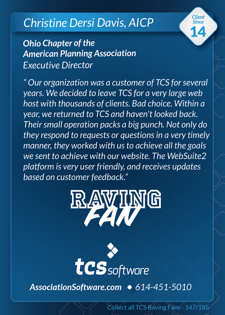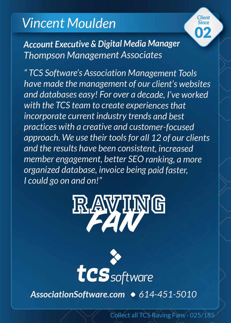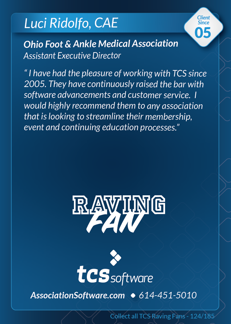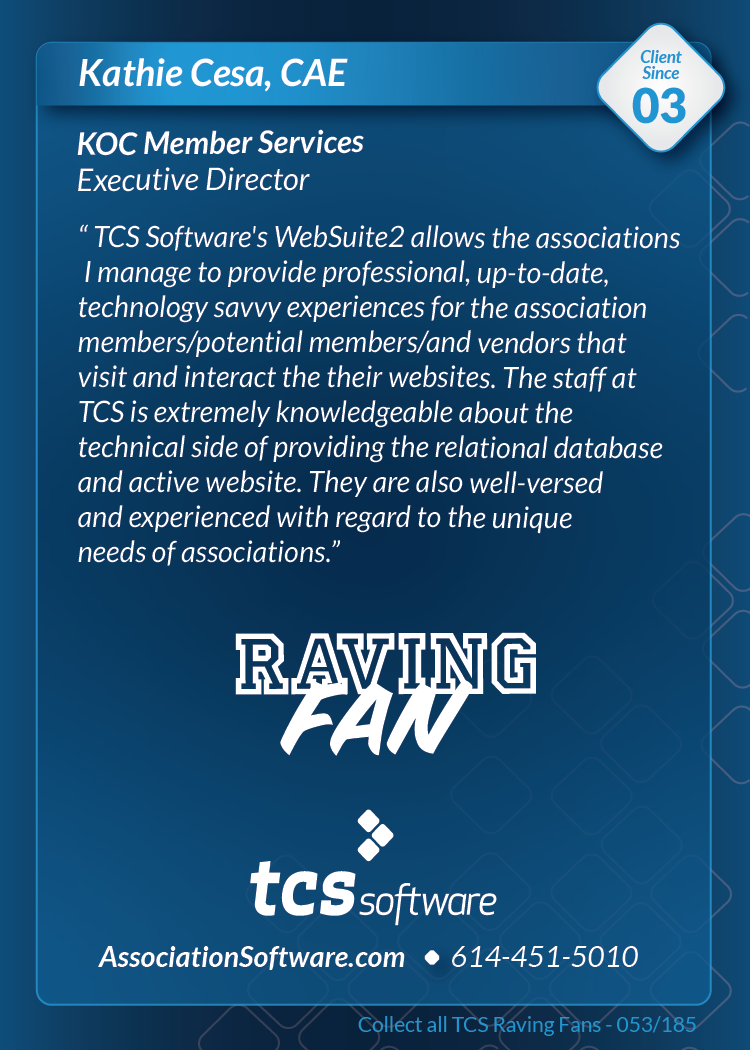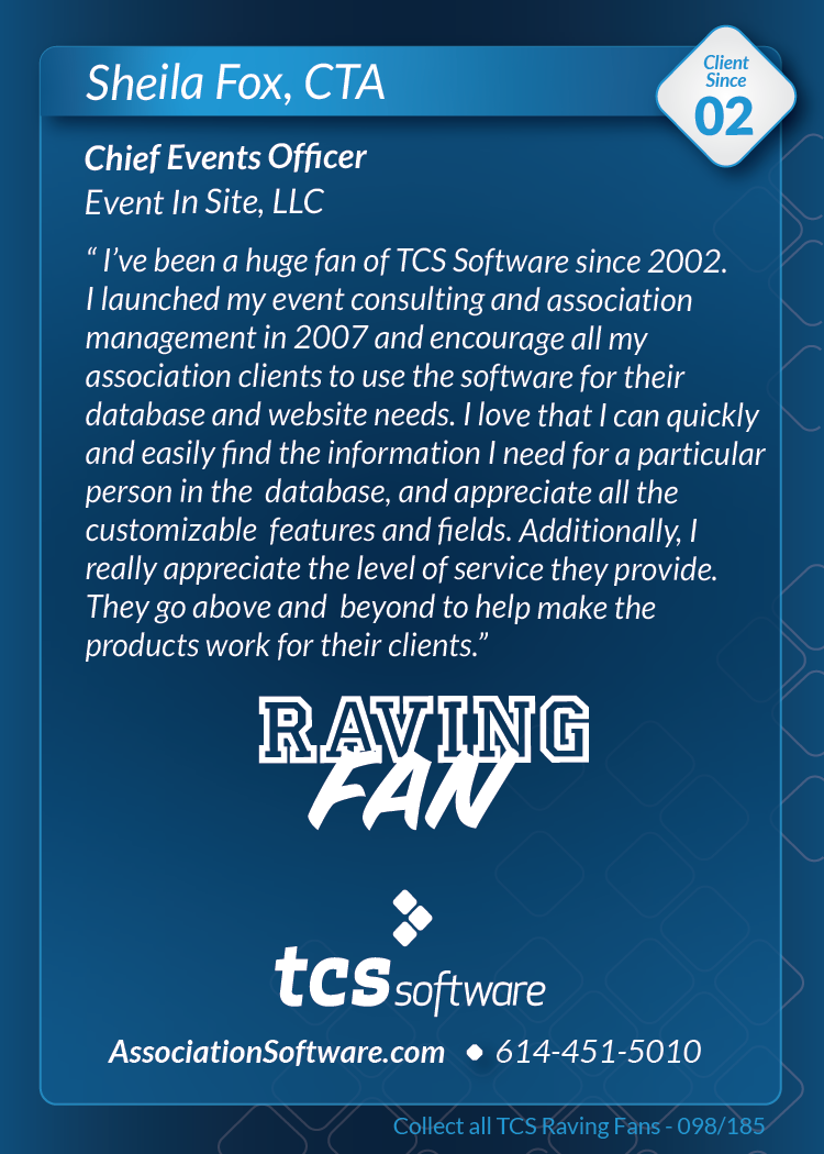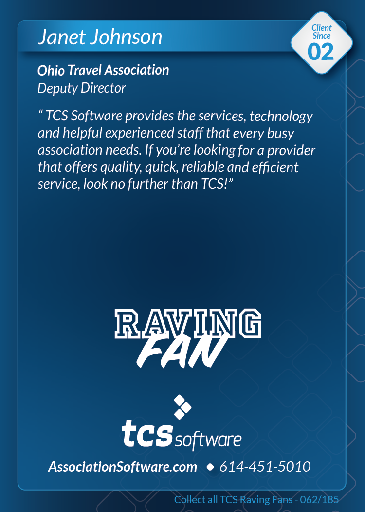 Thank you to everyone who visited us at ASAE'19 in Columbus, August 10-13th and picked up the series 1 pack of TCS Raving Fan cards. Want a pack? Call or email us and we'll be happy to send you one.